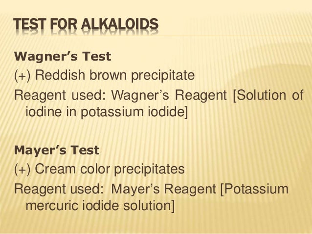 However, mayer's reagent is regarded to be the most sensitive test iodine solution in ki also gives an instant precipitate with very dilute solutions of ergot alkaloids mayer. The mayers reagent is specifically designed as the starting point within the sequential testing system.